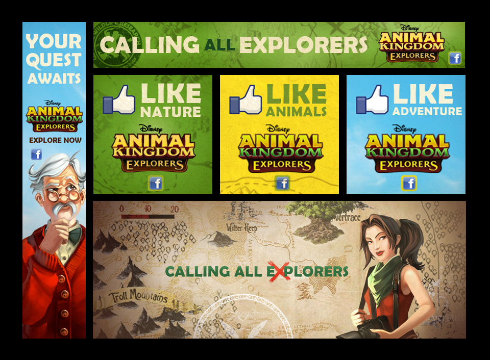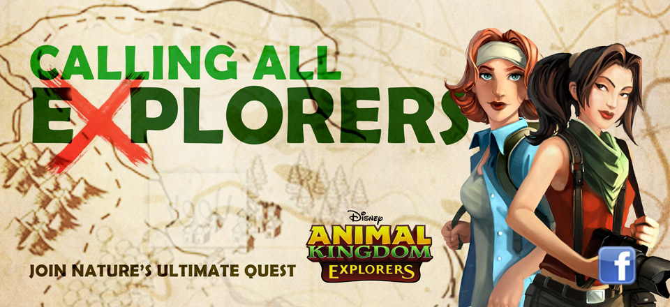 Brand identity for Disney's Animal Kingdom Explorers online Facebook game, where you can explore, find and nurture animals.